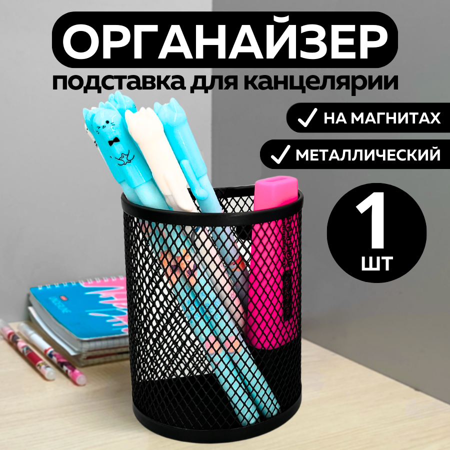 Металлическая подставка органайзер стакан CANBI для канцелярии, карандашница на магнитах информация: