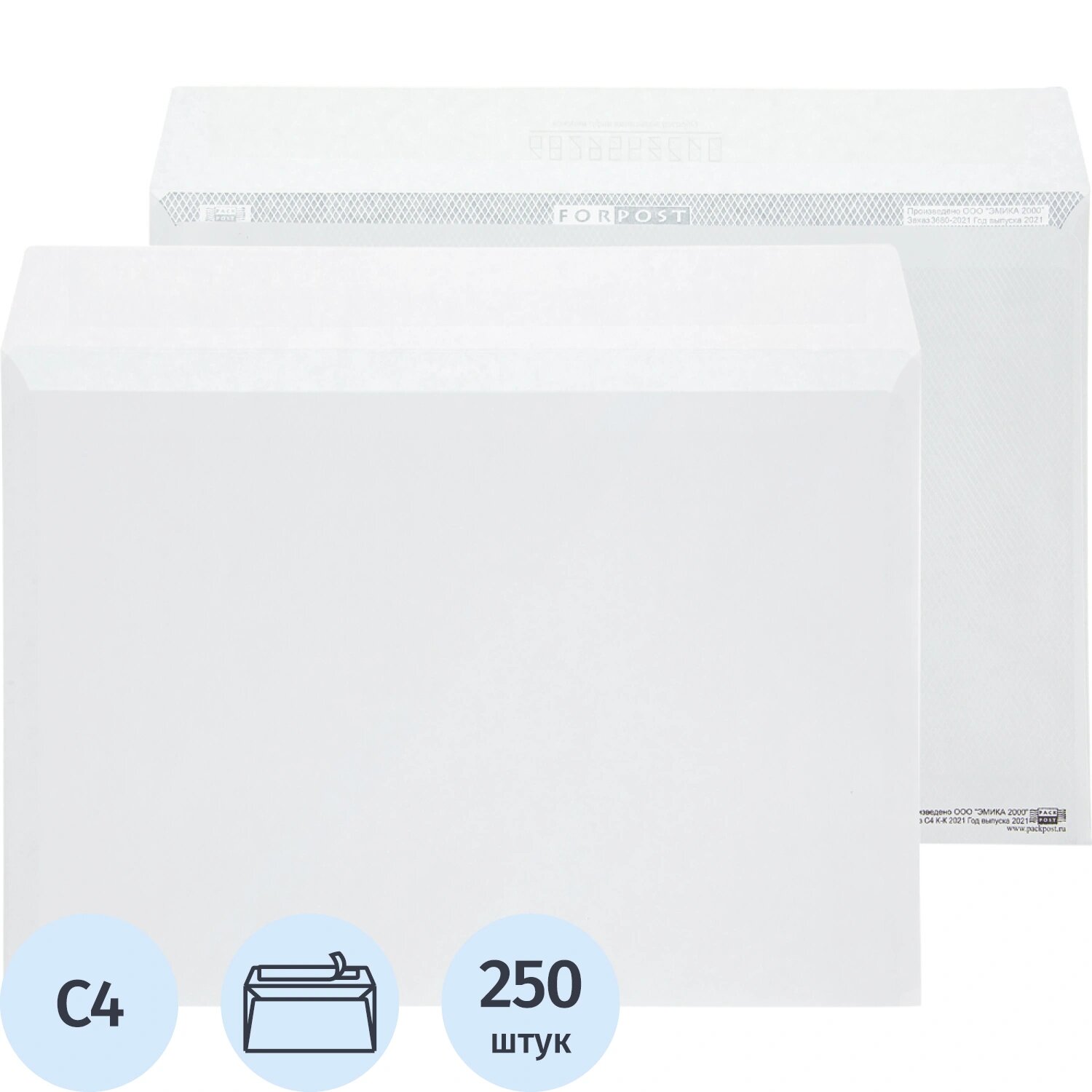 Конверт С4 белый 250 шт 229х324 мм стрип