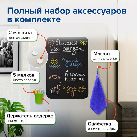 Доска на холодильник магнитно-меловая Brauberg, 42х30 см, с мелками, магнитом и салфеткой