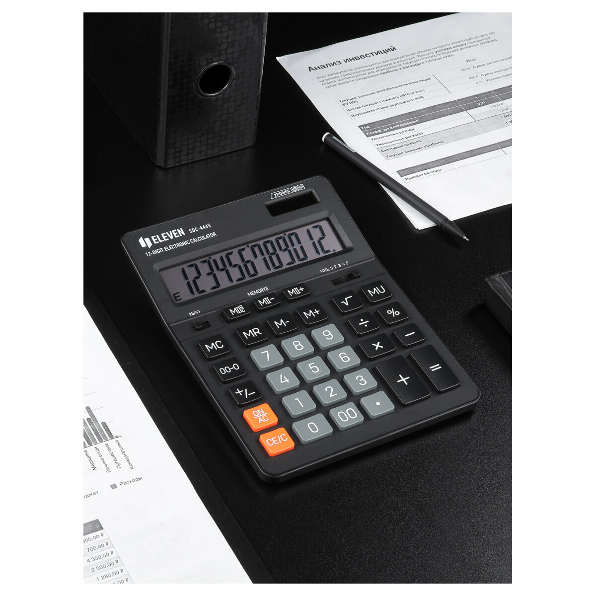 Отзывы на Калькулятор Eleven настольный, 12 разрядов, двойное питание, 155х205х36 мм, черный (SDC-444S)