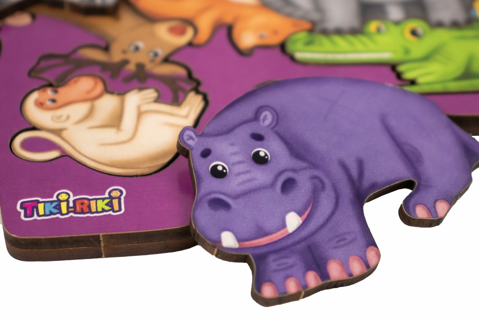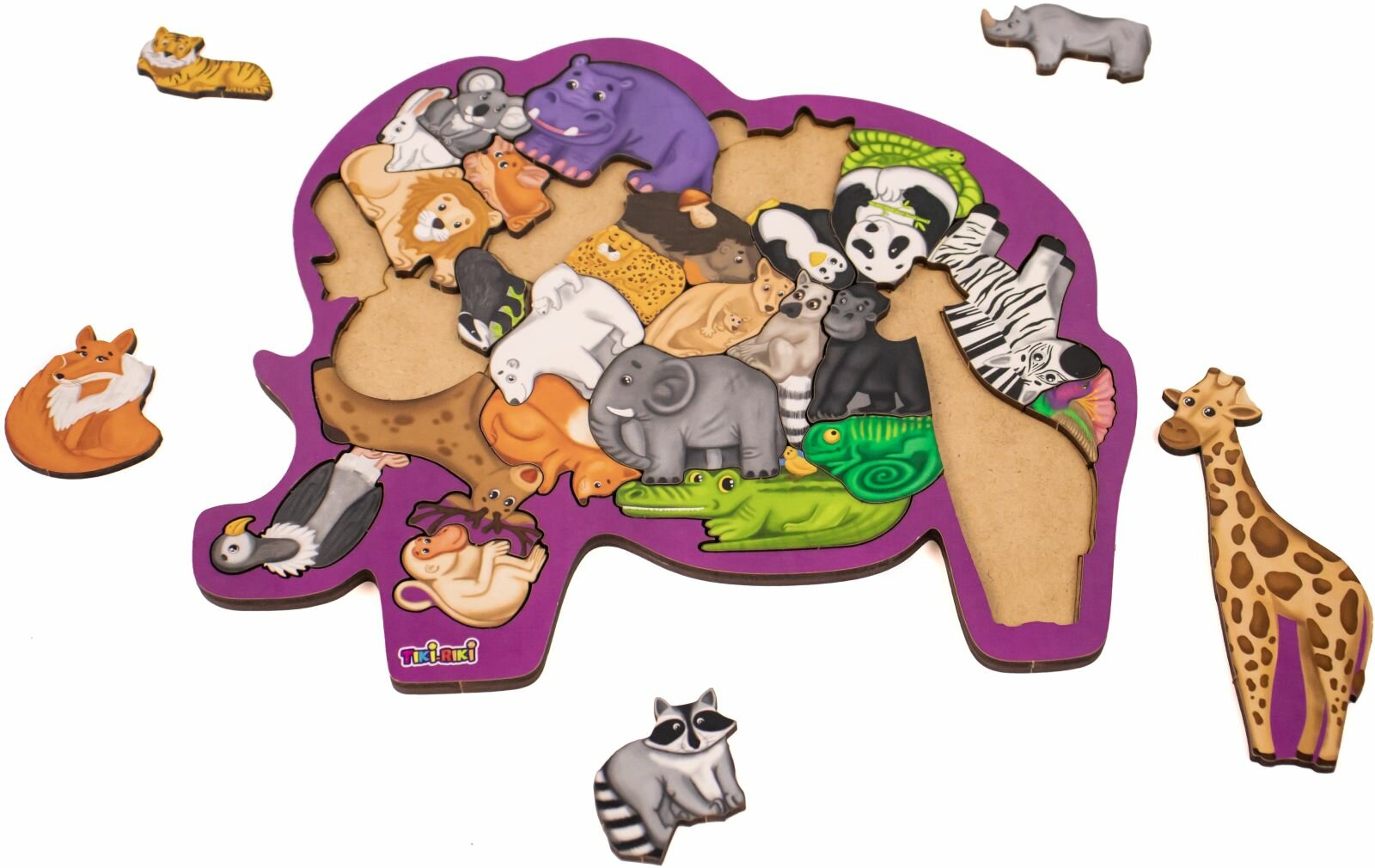 Развивающая игра-головоломка KoroBoom "Зоопарк" деревянная логическая рамка-вкладыш, учим диких животных, фигурный пазл с динозаврами, зоопазл информация: