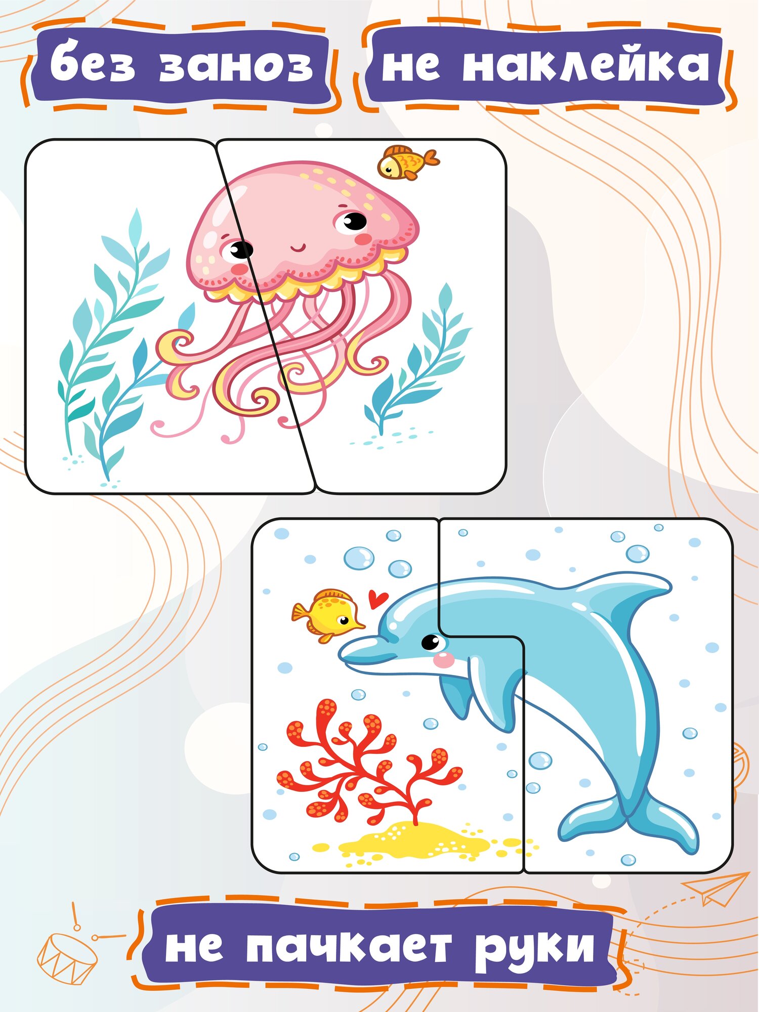 Деревянные пазлы для малышей от 3 лет " Обучающие карточки Игрушки Половинки с Морскими обитателями Животными и Фруктами " информация: