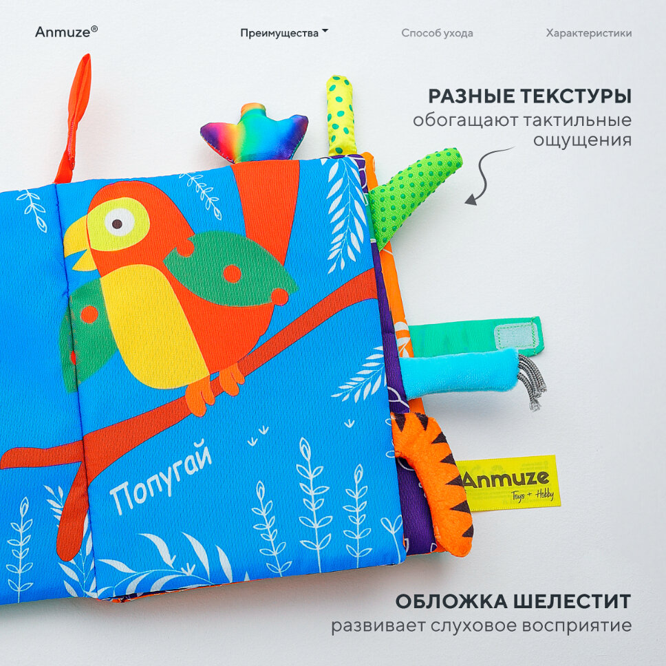 Отзывы на Мягкая развивающая книжка-игрушка для малышей с шуршащими страницами и хвостами животных Джунгли