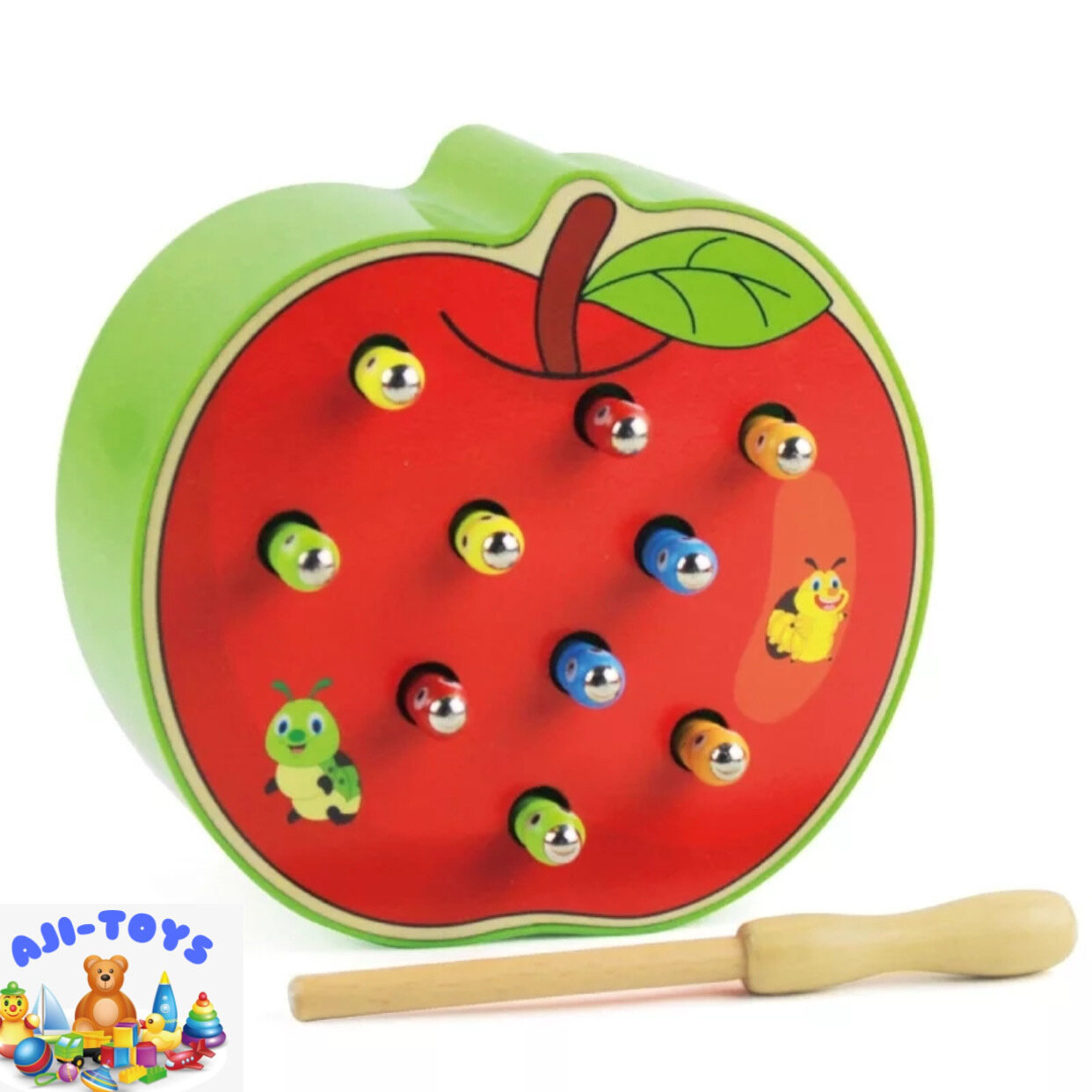 Развивающая игра Страна Монтессори магнитная рыбалка сортер (Поймай червячка в яблоке)