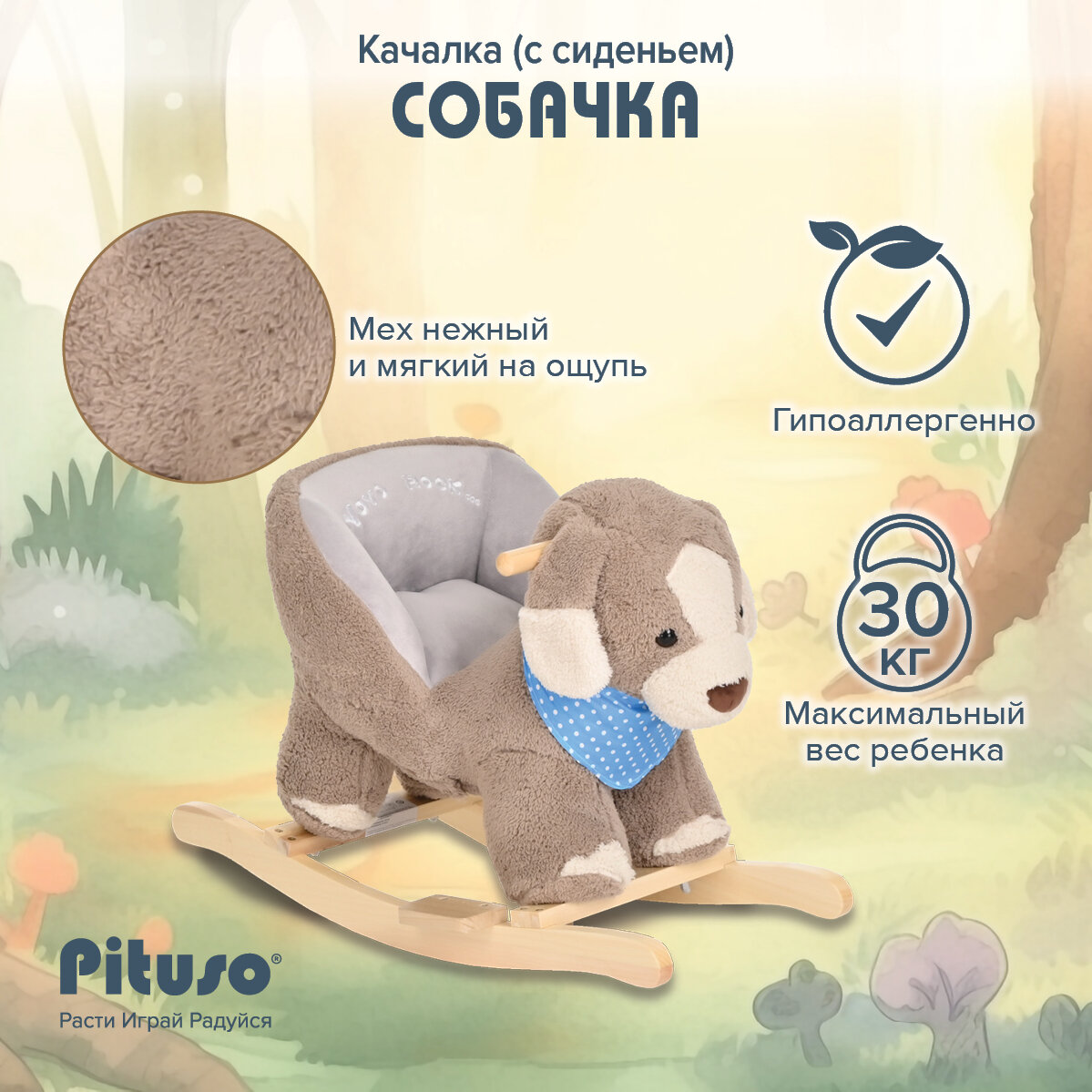 Качалка с сиденьем Pituso Собачка Серо-бежевый информация: