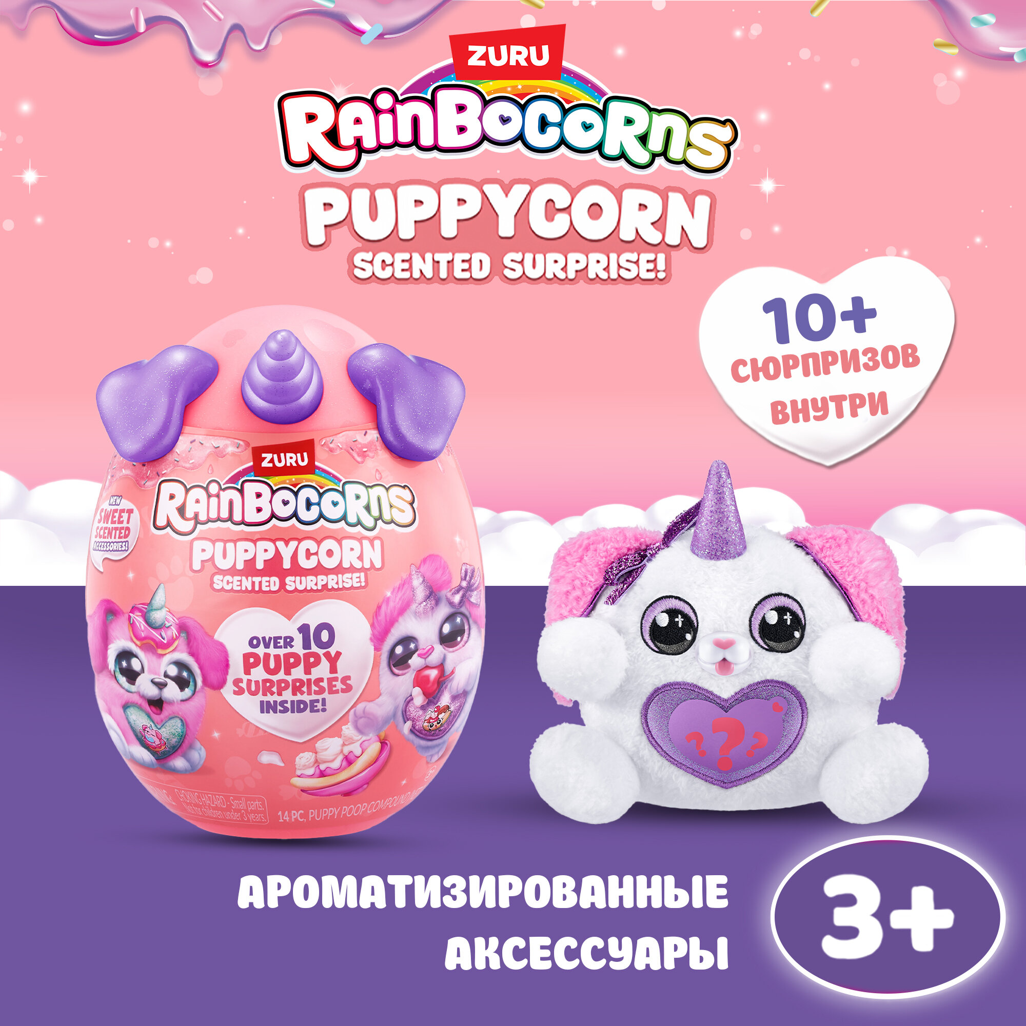 Игрушка-сюрприз ZURU RAINBOCORNS Puppycorn Scent, Плюшевый щенок с ароматизированными аксессуарами, игрушки для девочек, 9298 информация: