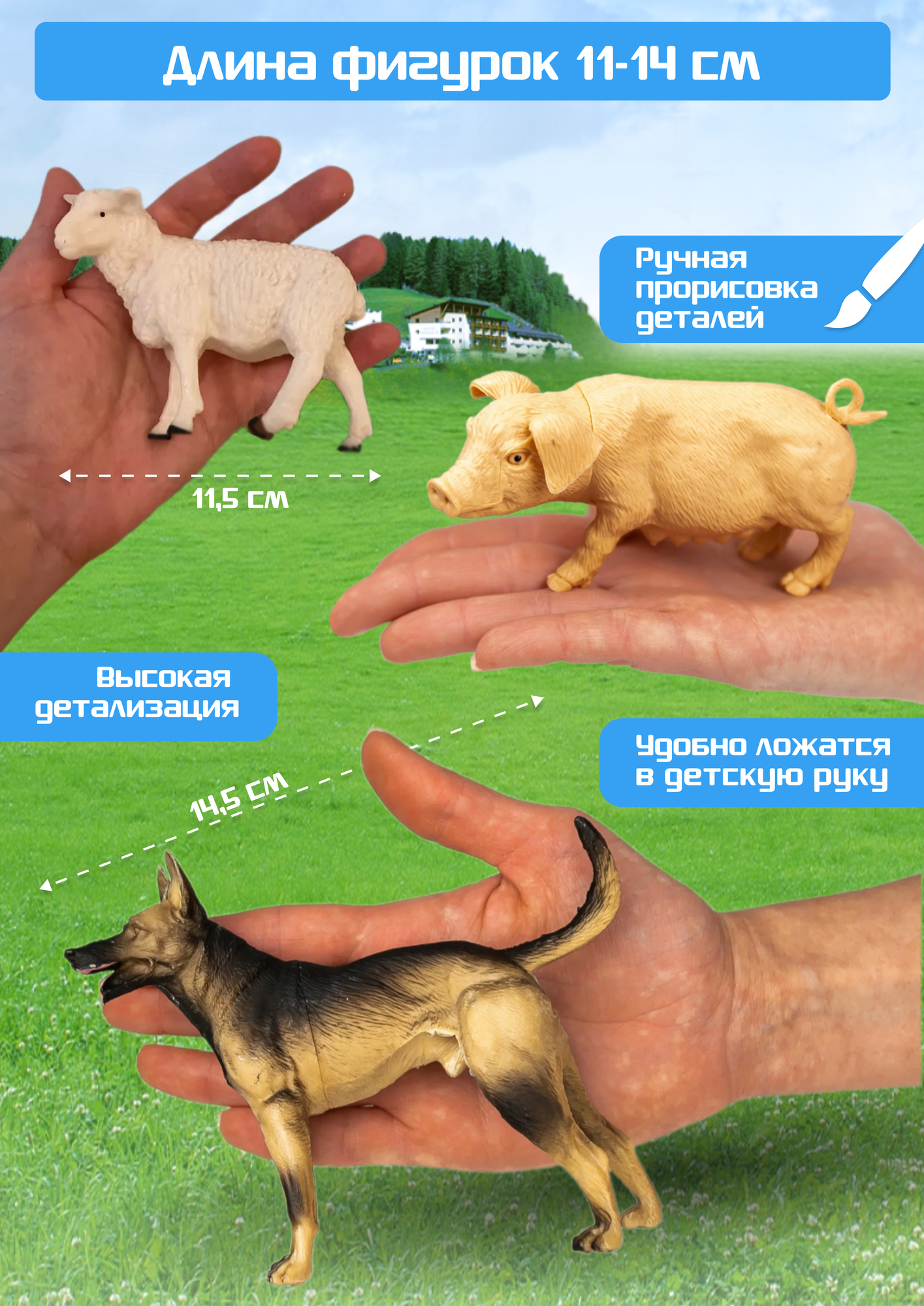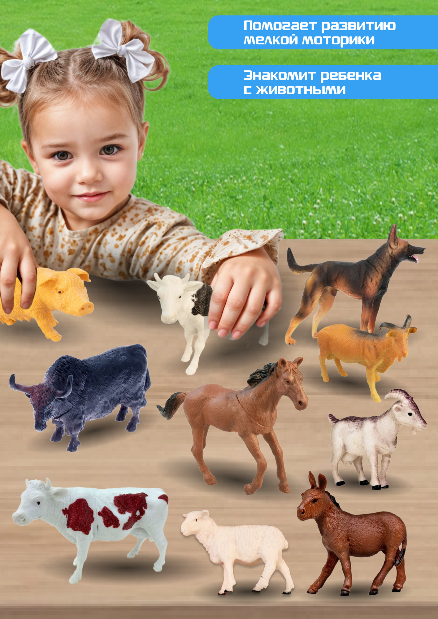 Набор реалистичных фигурок домашних животных "Ферма" 10 развивающих фигурок, высотой от 5,5 до 11 см, 303-86/ZY1060592 информация: