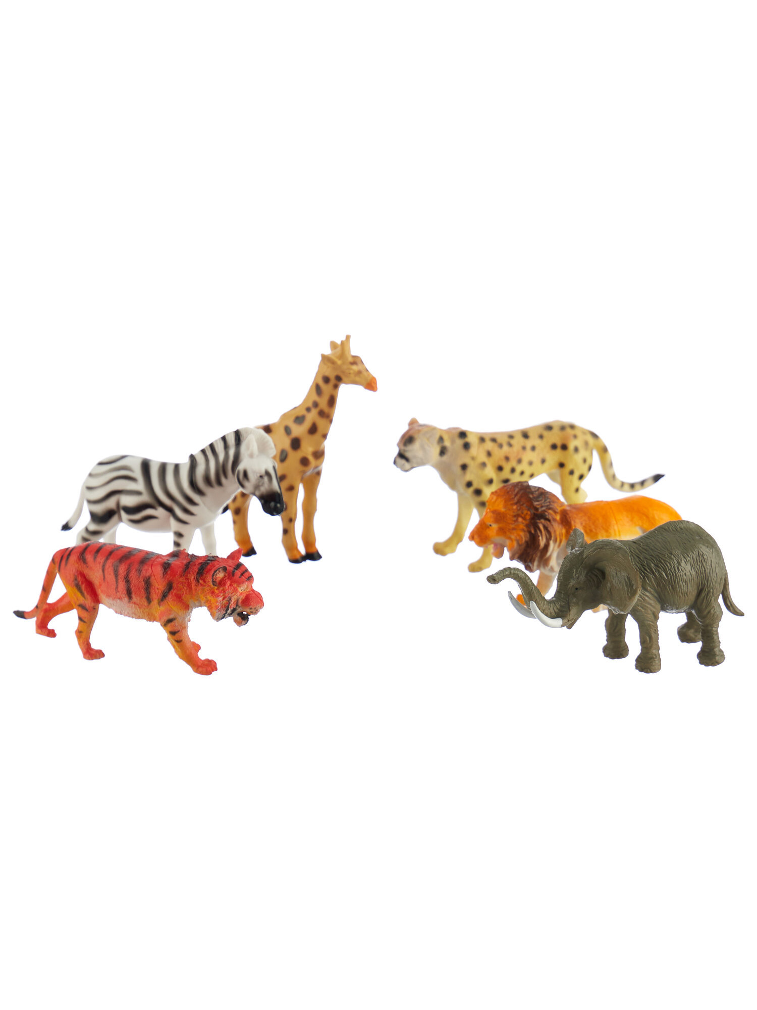 | Дополнительная информация | жираф — 7 х 2 х 9 см; лев — 10 х 2,5 х 6,3 см; тигр — 10,5 х 2,5 х 4,5 см; леопард — 12 х 2 х 6,2 см; зебра — 10 х 2,8 х 7 см; слон — 10 х 4,5 х 4,7 см. |