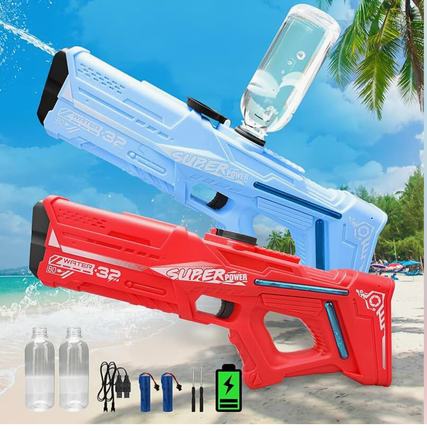 | Комплектация | Мощный водяной пистолет емкостью 350 мл, обойма 250 мл, обойма 350 мл, аккумулятор с кабелем USB, отвертка |