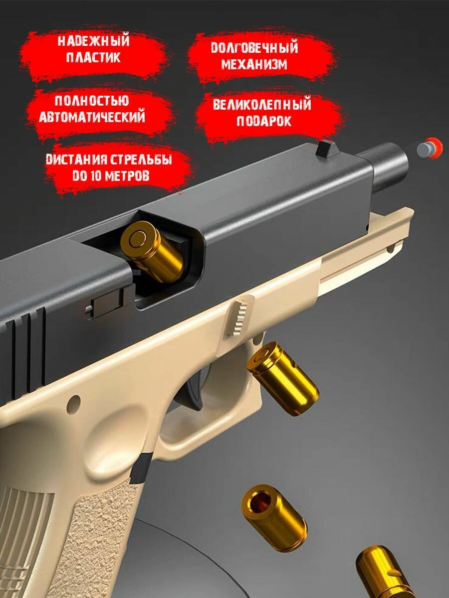 10 цен на Пистолет автоматический детский с мягкими пульками и вылетающими гильзами. Игрушечное оружие.