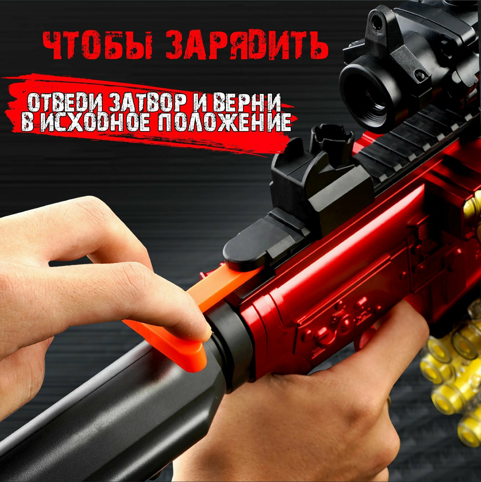 Нерф игрушечный автомат с мягкими пулями М416.Детское оружие с глушителем и ручной загрузкой. Отличный подарок мальчику! Цвет Красный. 1 500 ₽