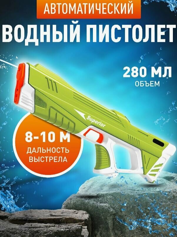 Отзывы на Водяной пистолет (автомат) мощный электрический на аккумуляторе "длина 43 см." / Водомет стреляет очередью для детей / салатовый
