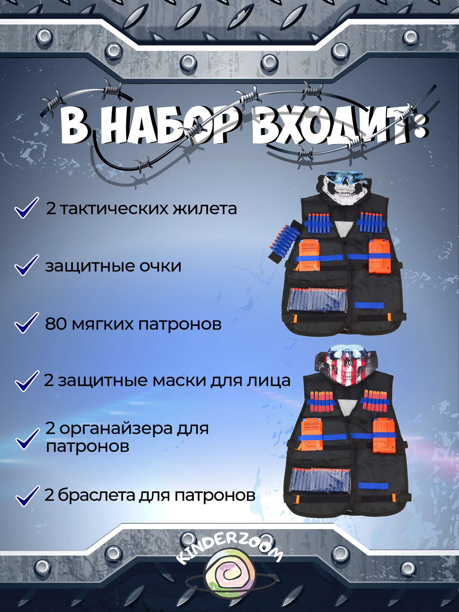 Жилет защитный 12в1 (на два игрока)/ Набор для игры в Nerf/Нерф информация: