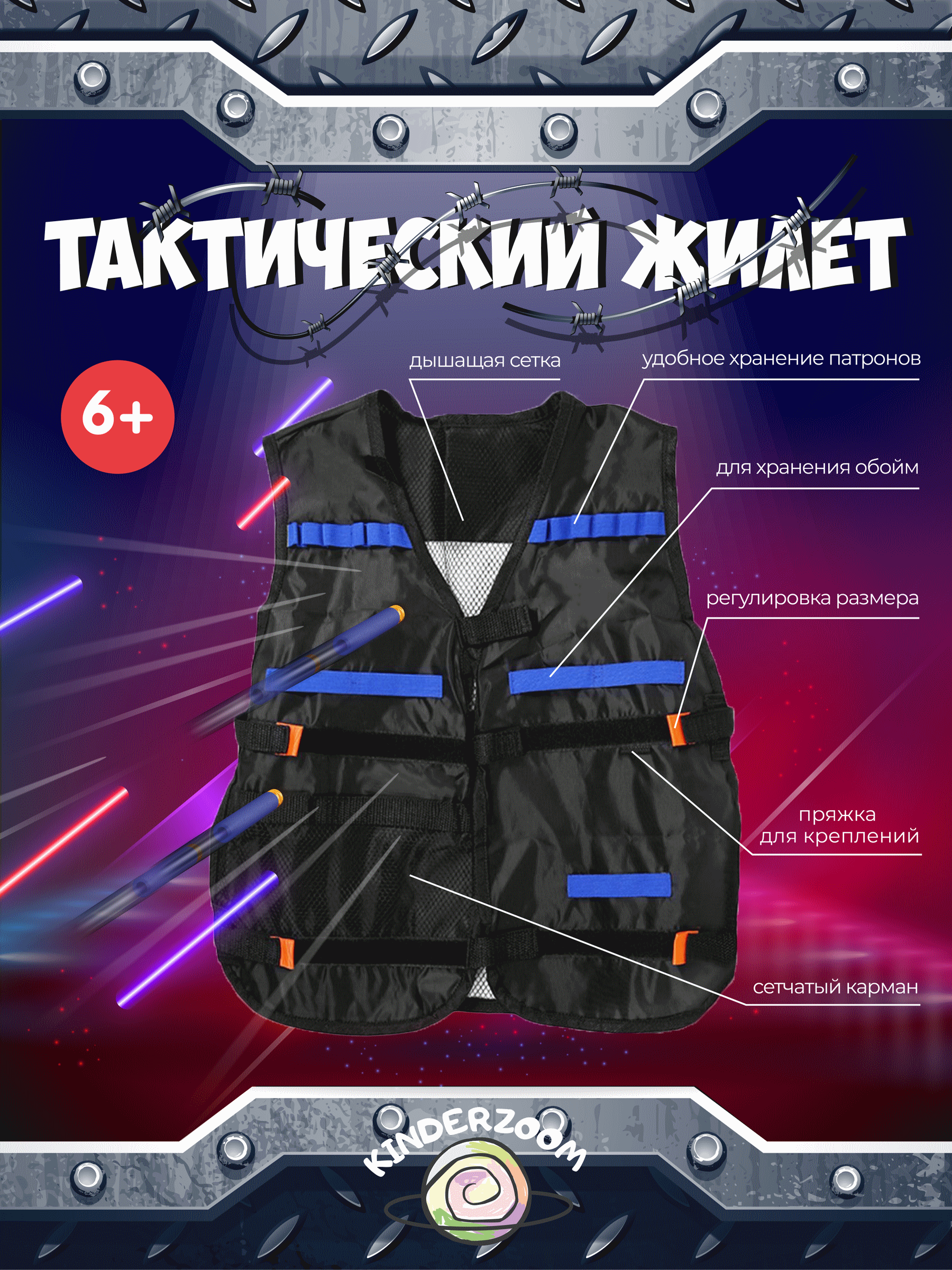 Жилет защитный 6в1/ Набор для игры в Nerf/Нерф (красный) информация: