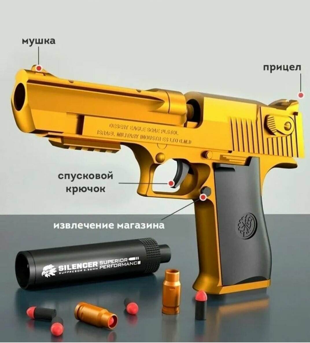 Отзывы на Пистолет с мягкими пулями пустынный орел Ю9-52, игрушечное оружие, с гильзами и глушителем