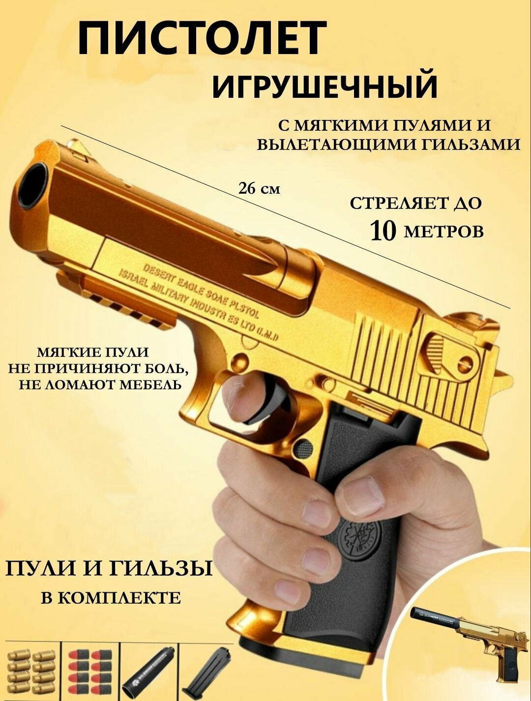 Пистолет с мягкими пулями пустынный орел Ю9-52, игрушечное оружие, с гильзами и глушителем информация: