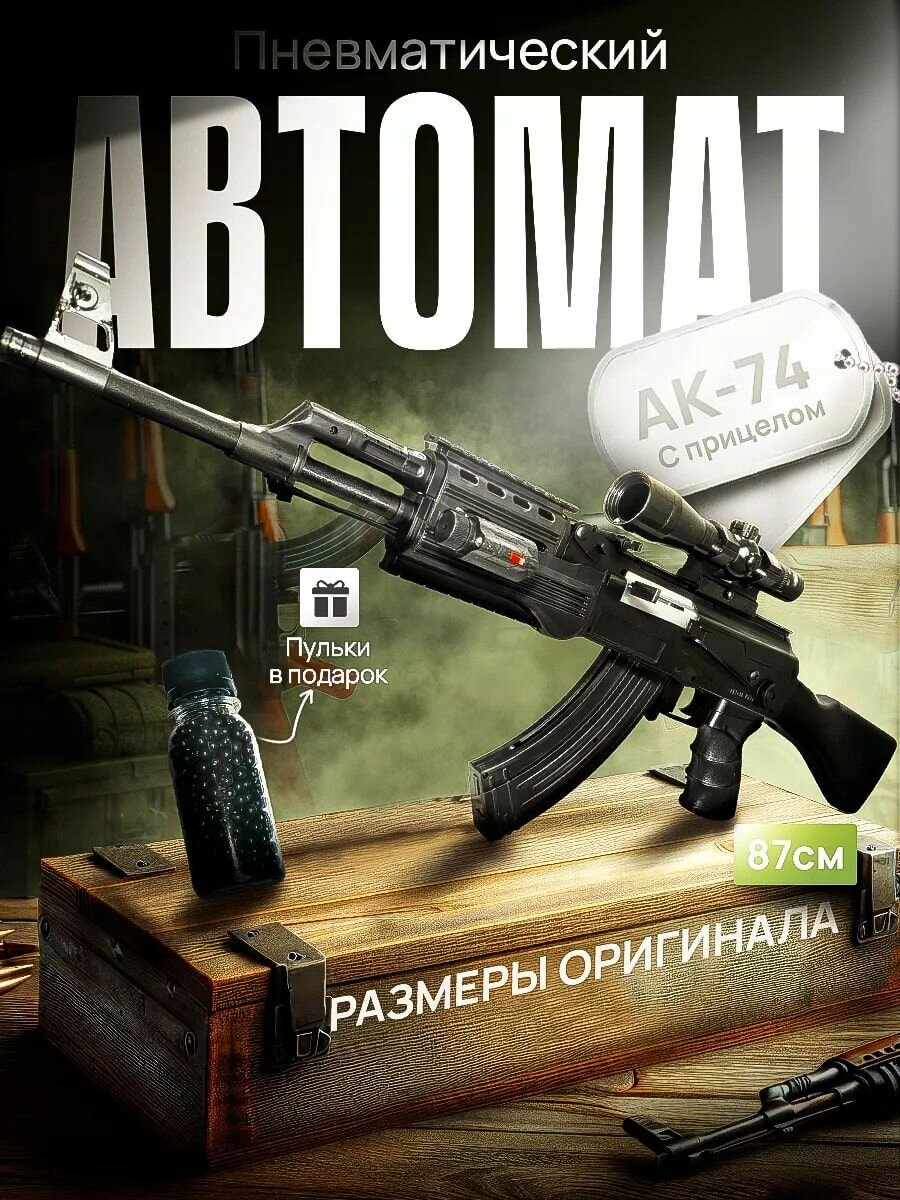 10 цен на Детский автомат АК-47 с пульками 6 мм.