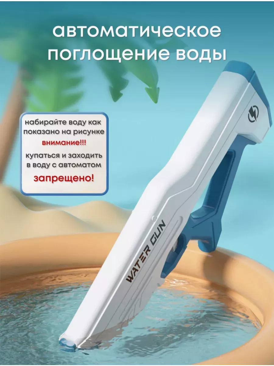 Отзывы на Водяной пистолет (автомат) мощный электрический на аккумуляторе 60 см. / Водомет стреляет очередью для детей / Бластер водный "Цвет: белый"