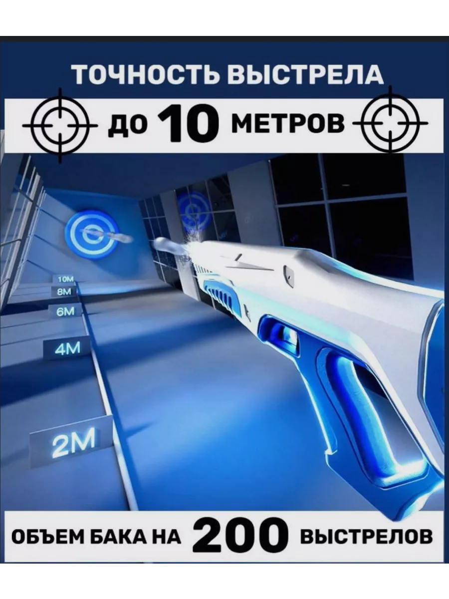 | Дополнительная информация | Водный электрический бластер - отличный выбор в подарок для активных мальчиков и девочек. Бластер на аккумуляторе, создан для долгих сражений! |