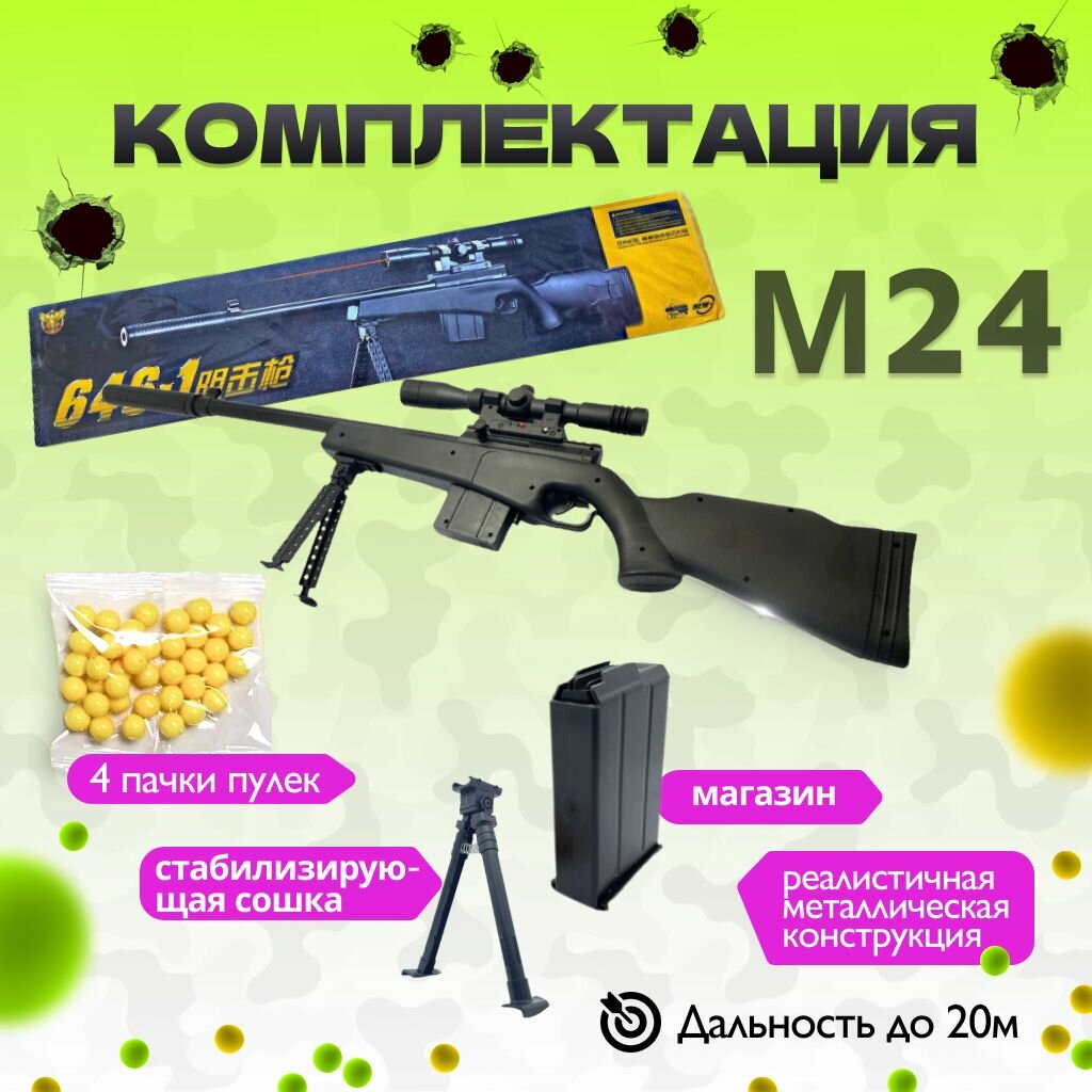 Детская снайперская винтовка M24 пневматическая с оптическим прицелом, 96см, автомат стреляет пульками (в коробке) информация: