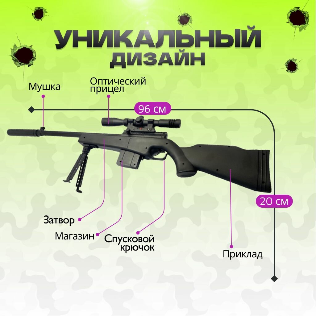 10 цен на Детская снайперская винтовка M24 пневматическая с оптическим прицелом, 96см, автомат стреляет пульками (в коробке)