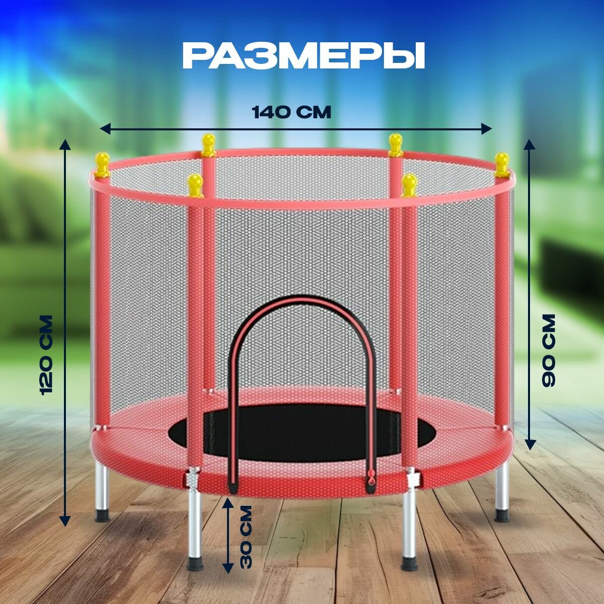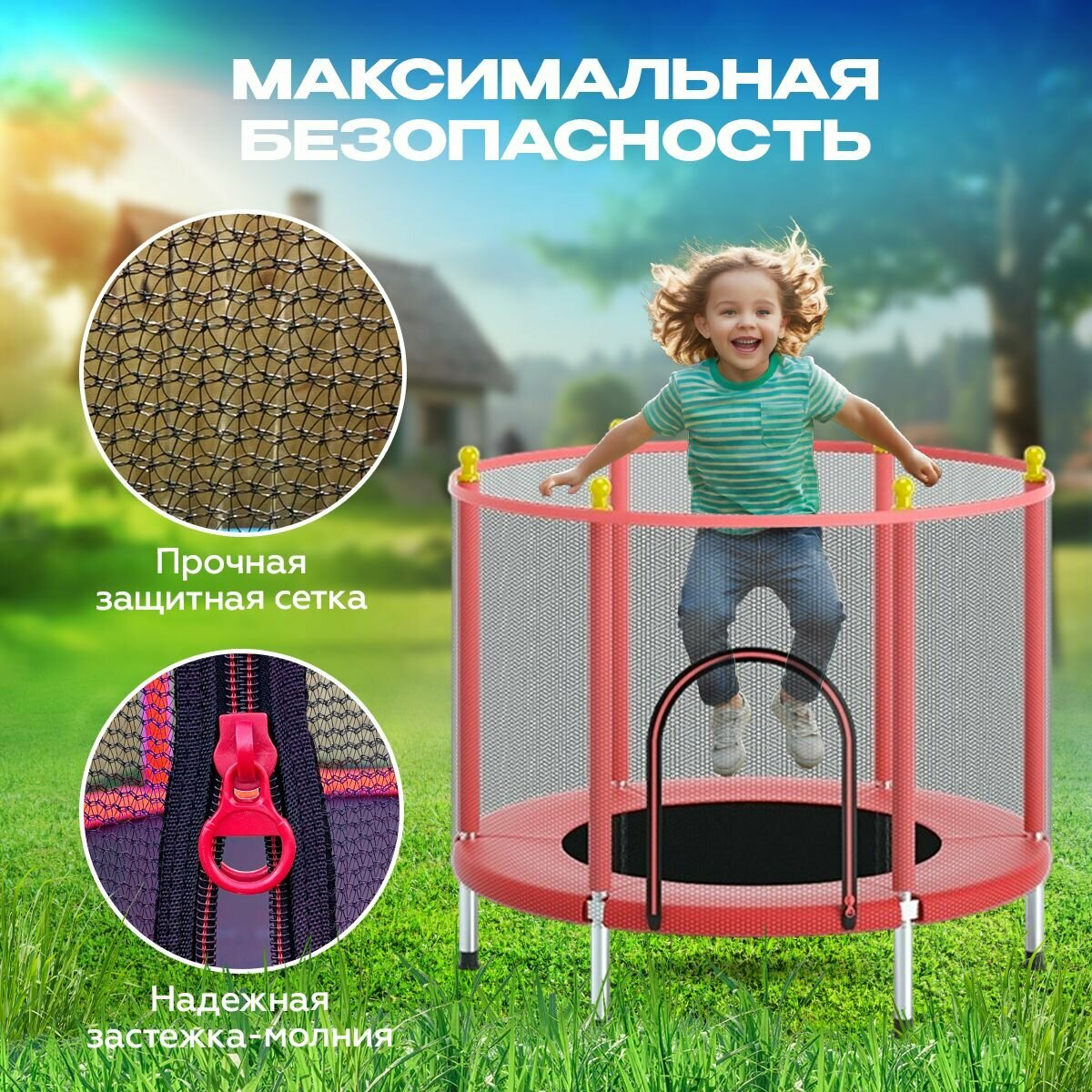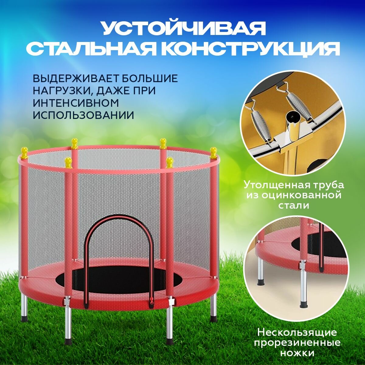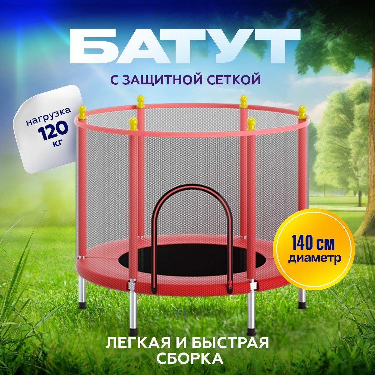 Батут с защитной сеткой детский и для взрослых каркасный уличный для джампинга и дома дачи спортивный манеж для малышей мини 140 см красный информация: