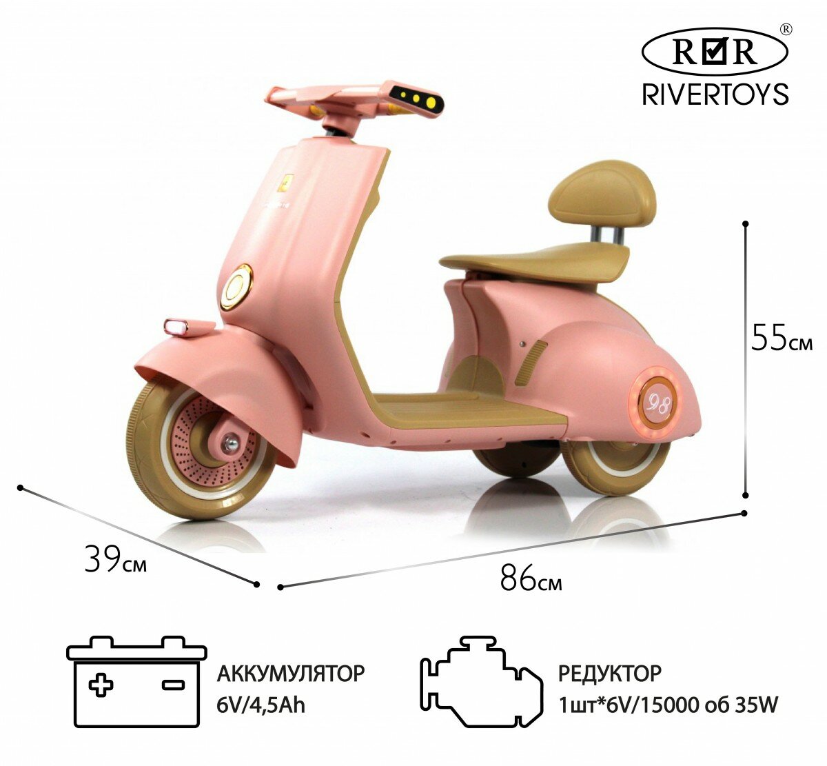 10 цен на RiverToys Детский электроскутер K444PX розовый
