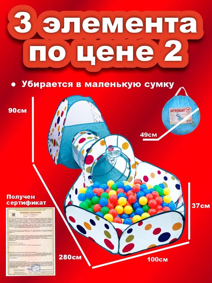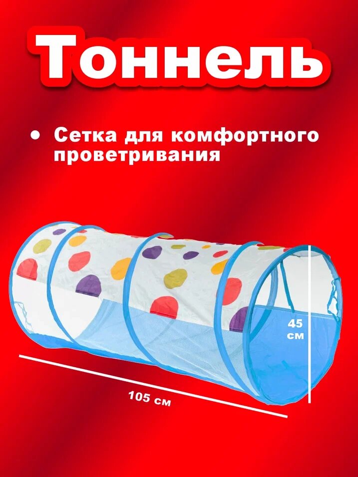 Палатка детская 3 в 1 Игрокат Рури XL с тоннелем и манежем красно-белая, вигвам детский, палаткаигровая 2 100 ₽
