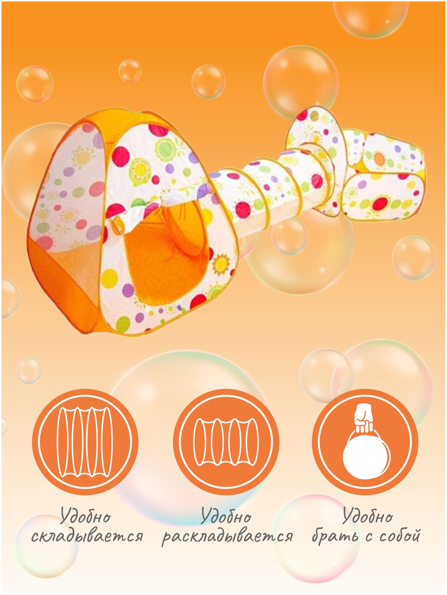 Палатка детская игровая 3 в 1 с тоннелем и бассейном, оранжевая информация: