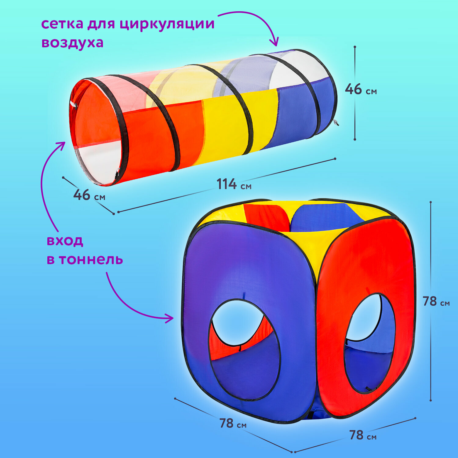 Палатка детская игровая (домик) для девочки, мальчика, лабиринт с 2 тоннелями и кубом, Brauberg Kids, 665171 информация: