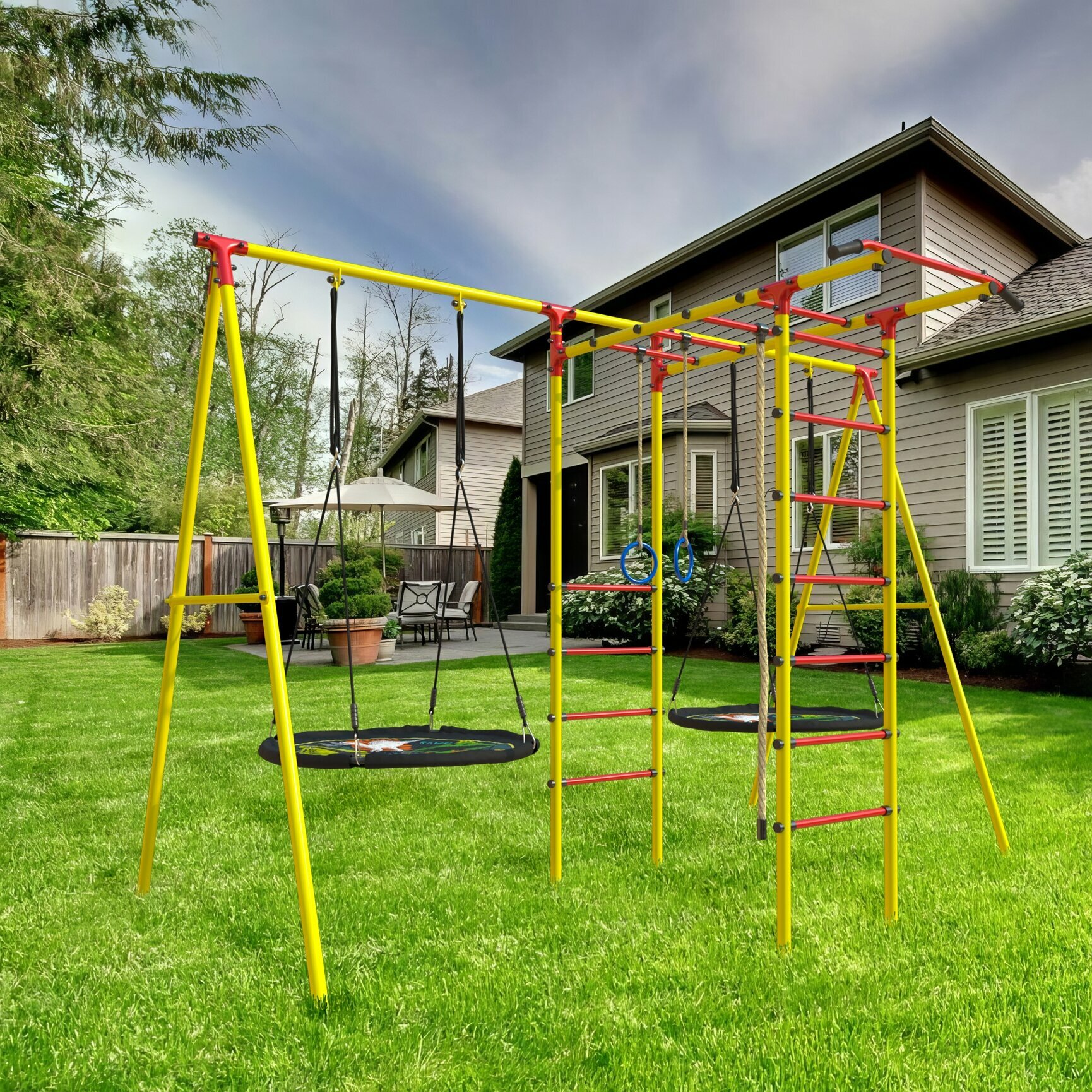 | Комплектация | Качели гнездо, каркас, рукоход, турник, шведская стенка. |