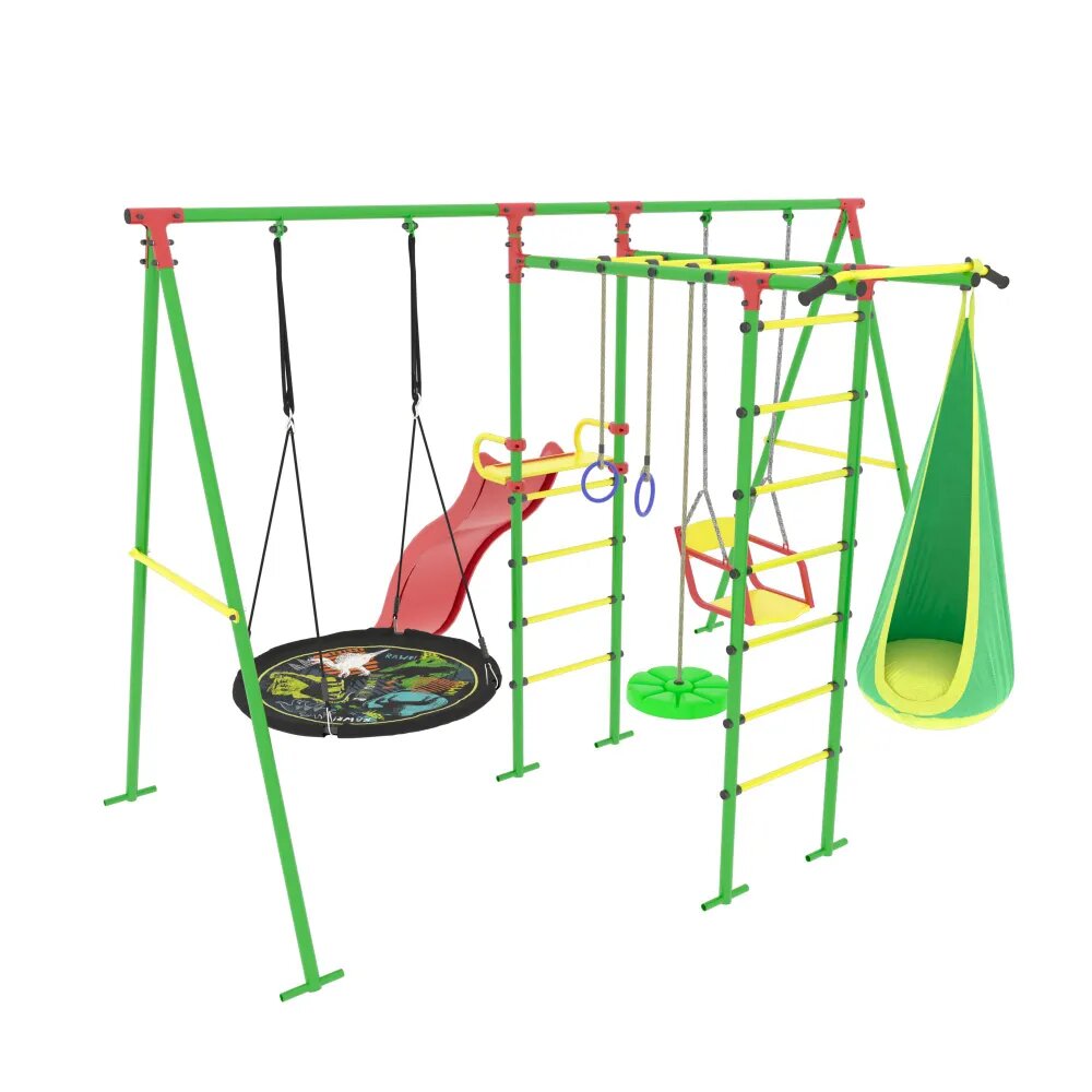 | Комплектация | Гимнастические кольца, Канат, Качели, Кольца, Лестница, Навесное оборудование, Перекладина, Рукоход, Тарзанка, Турник, Шведская стенка |