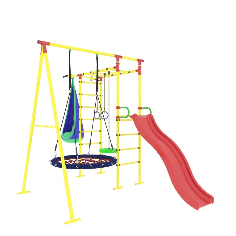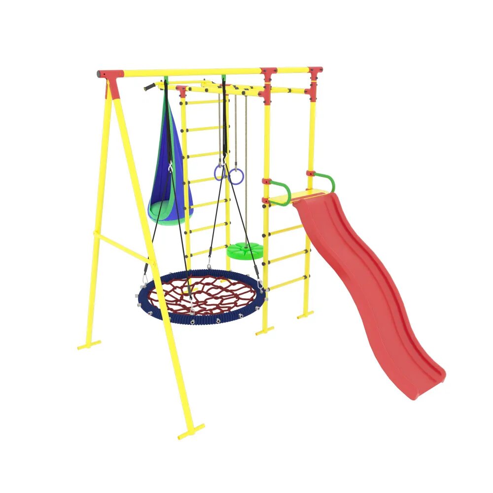 | Комплектация | Гимнастические кольца, Канат, Качели, Кольца, Лестница, Навесное оборудование, Перекладина, Рукоход, Тарзанка, Турник, Шведская стенка |