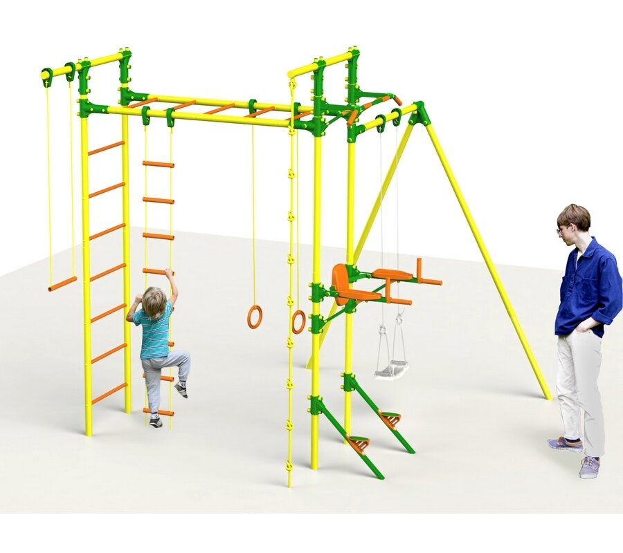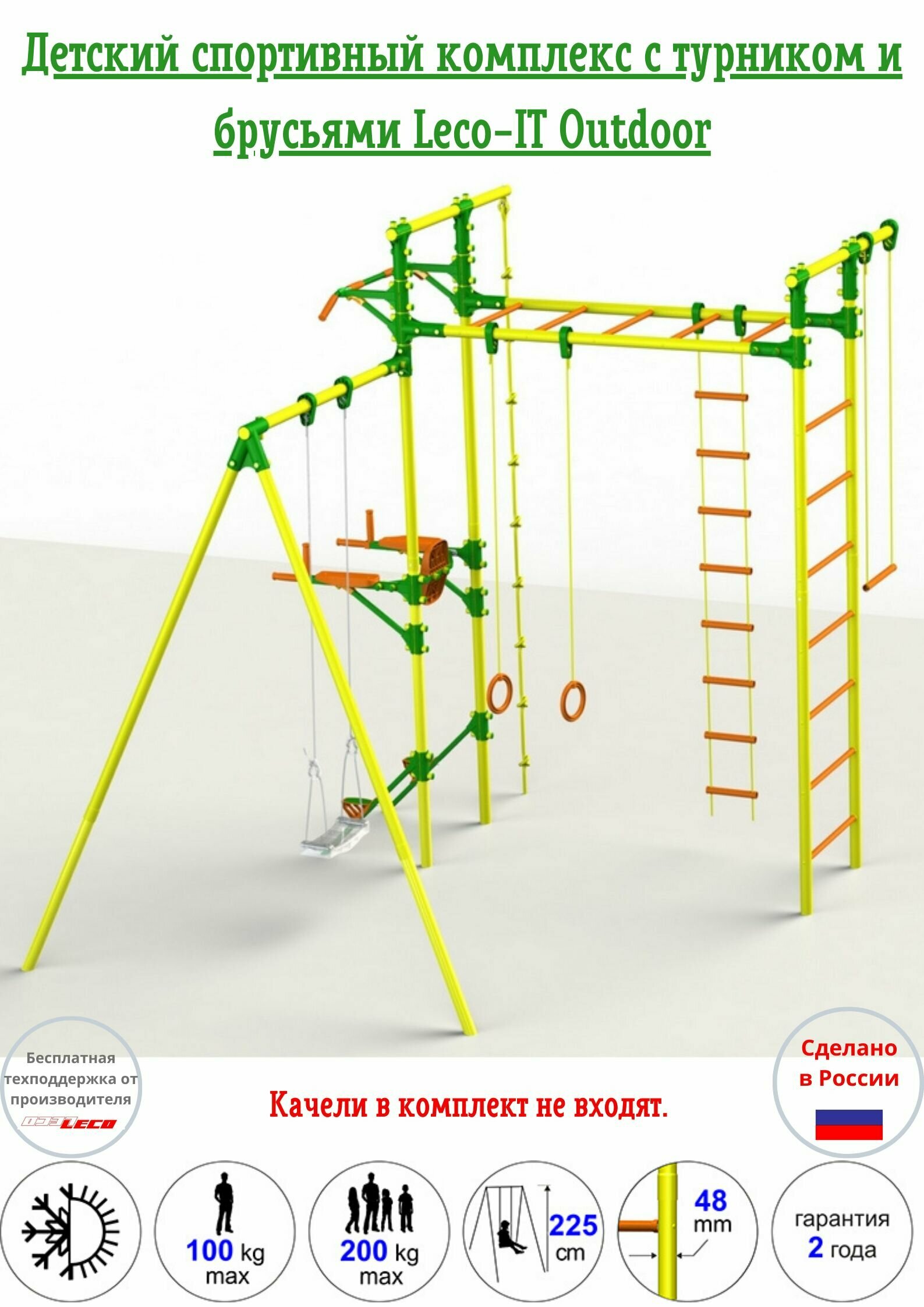 Детский спортивный комплекс с турником и брусьями Leco-IT Outdoor, желто-зеленый информация: