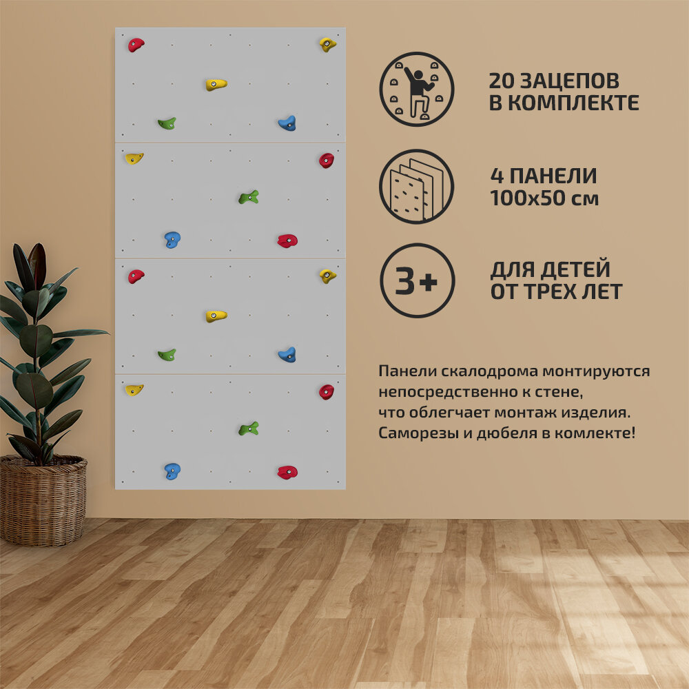 10 цен на Домашний скалодром Tree To Wall: 200 x 100 см, из 4-х панелей, светло-серый