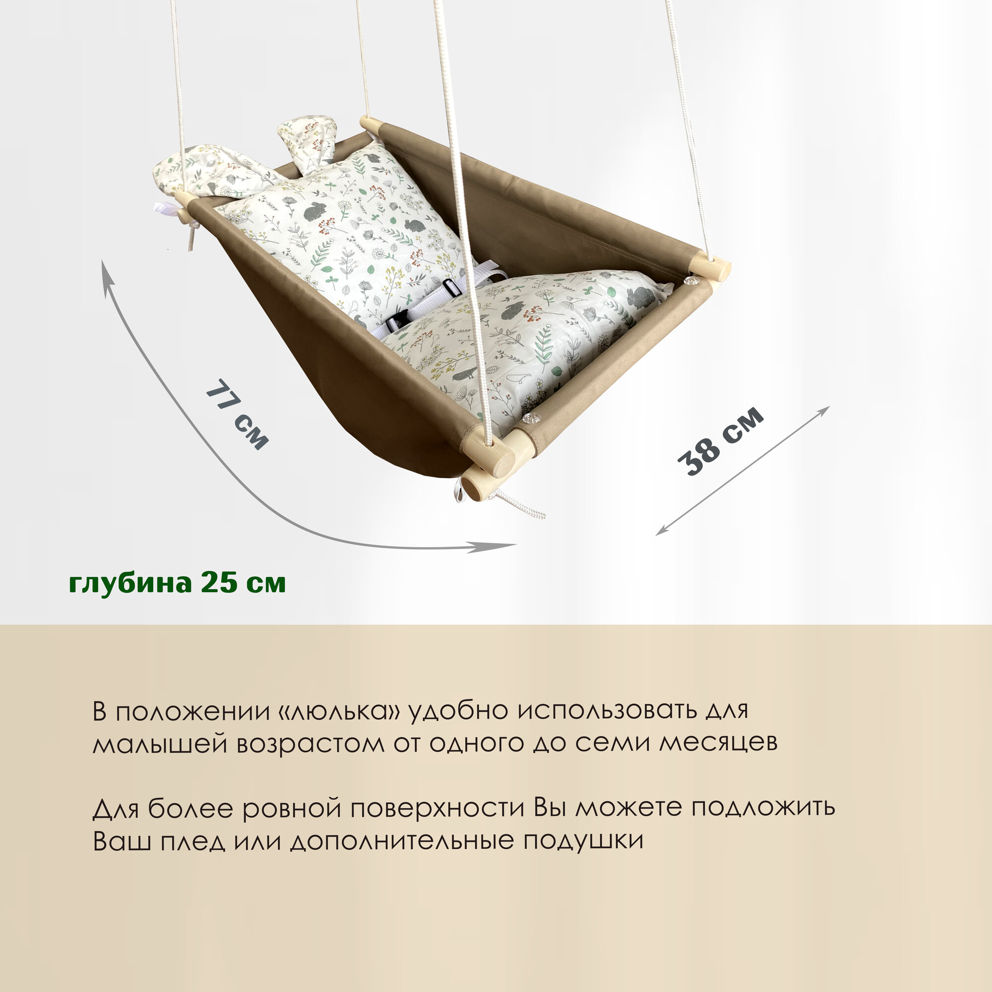 Детские подвесные качели+беж+зайцы уши информация: