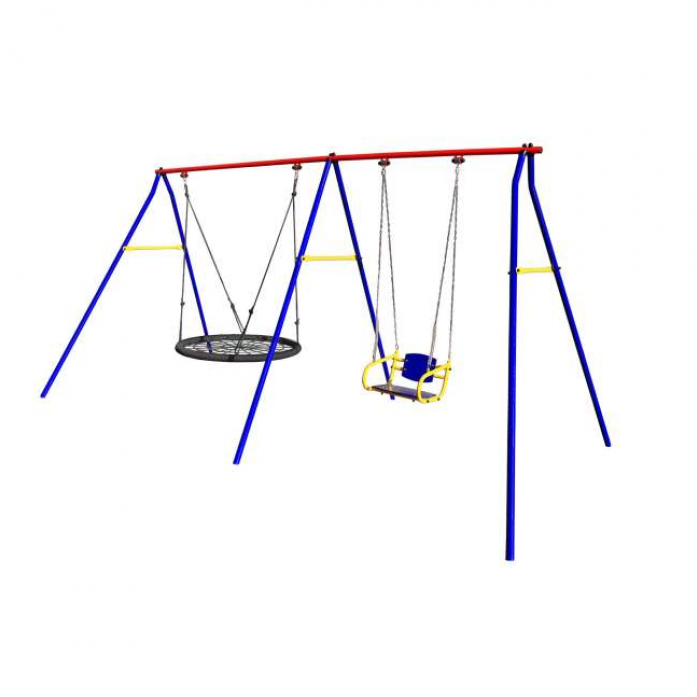 Уличные качели детские ROMANA с качелями со спинкой на цепях и пластиковыми