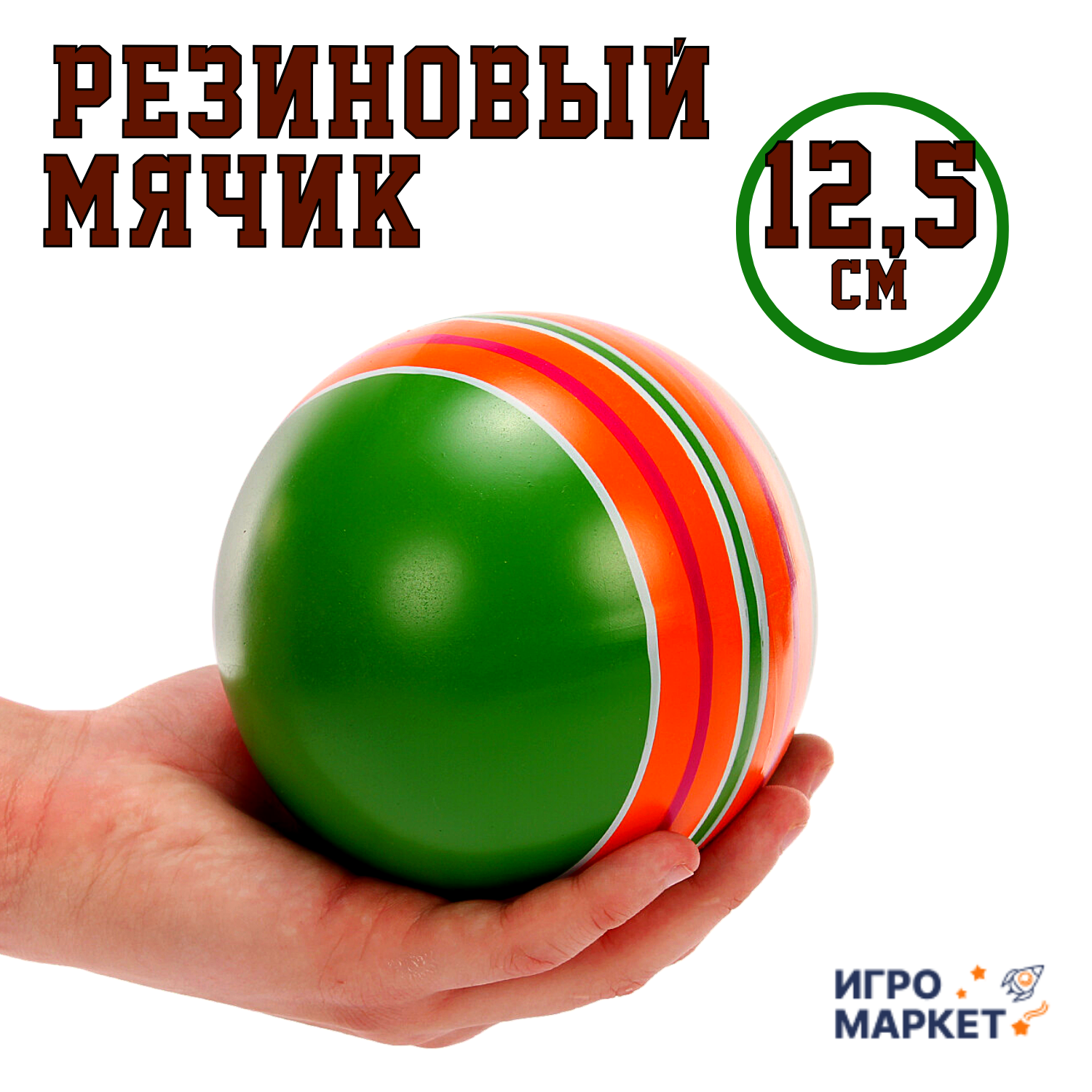 Мяч детский спортивный 12,5 см "Полосатики", резиновый, возраст 1+, для игр в помещении и на улице, НЕ требует накачки, в надутом виде, легкий, прочный, для девочки и для мальчика / 1 шт информация: