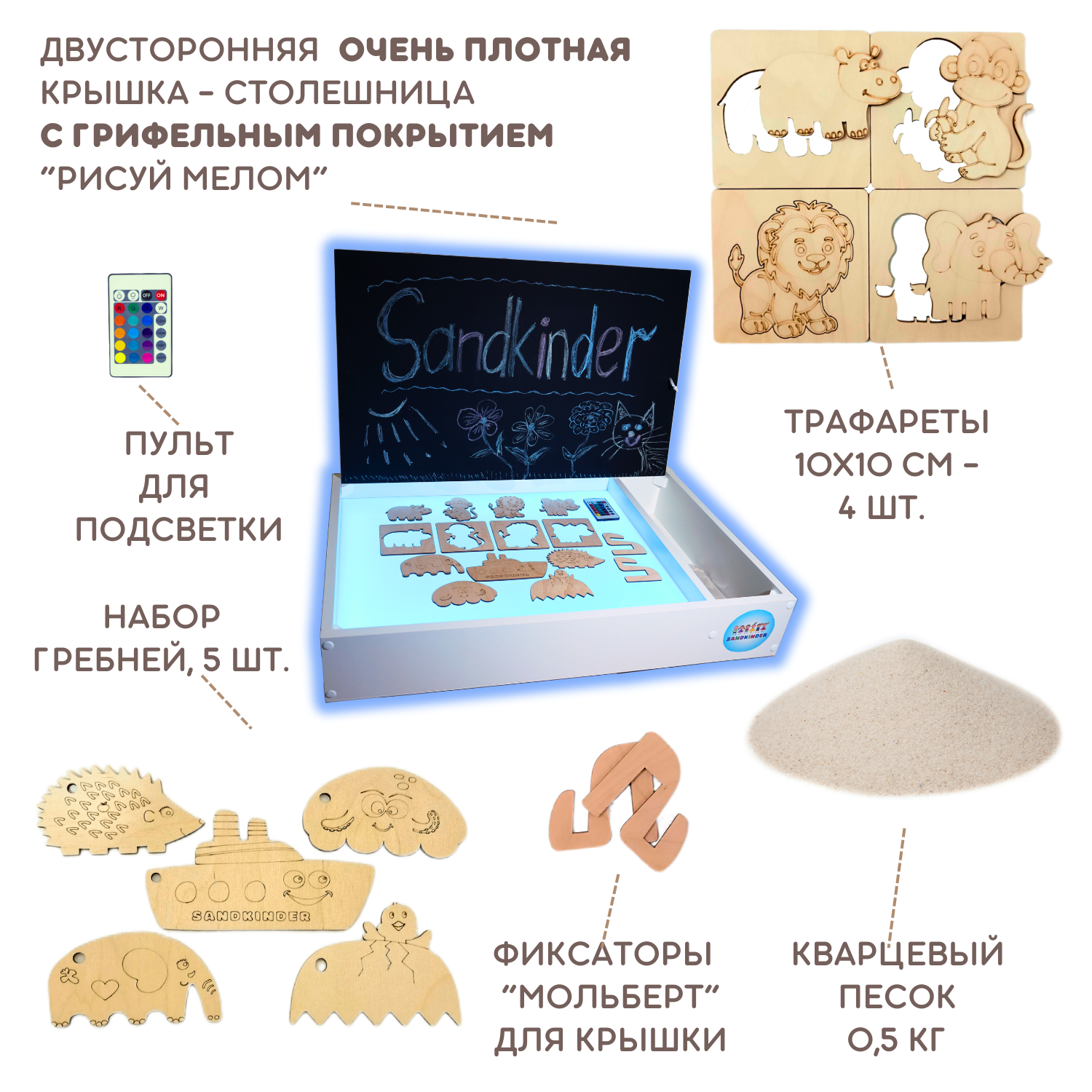 10 цен на Световой стол-планшет для рисования песком "Уникум" с цветной подсветкой, пультом и грифельной крышкой 60х30 см, Sandkinder