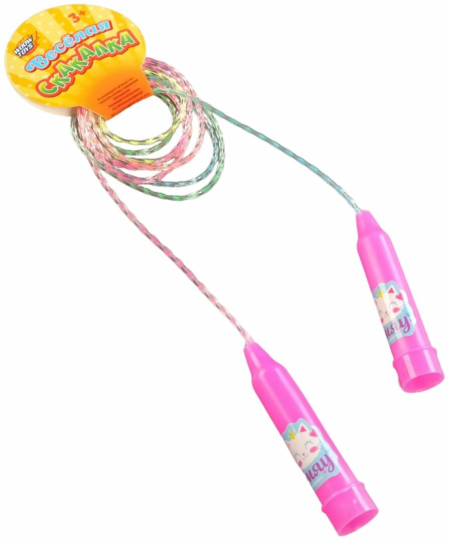 Скакалка детская спортивная "Мяу", для гимнастики, подвижных игр дома и на улице, цвет розовый информация: