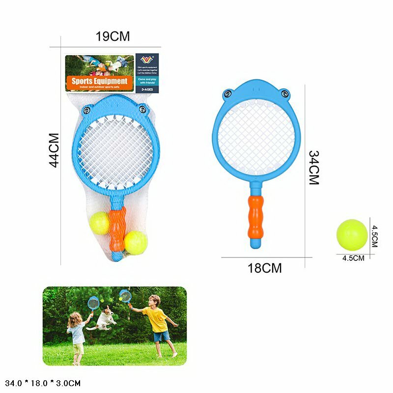 Отзывы на Набор для игры в большой теннис детский, две ракетки + два мяча, 34 см 777-616B /Спортивные игры/Игровые наборы для улице