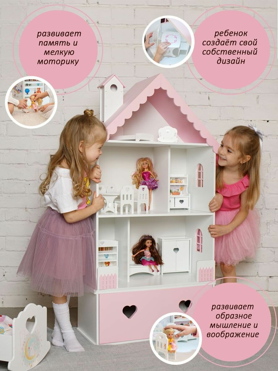 Кукольный домик деревянный с комодом Луиза для кукол до 32 см бело-розовый информация: