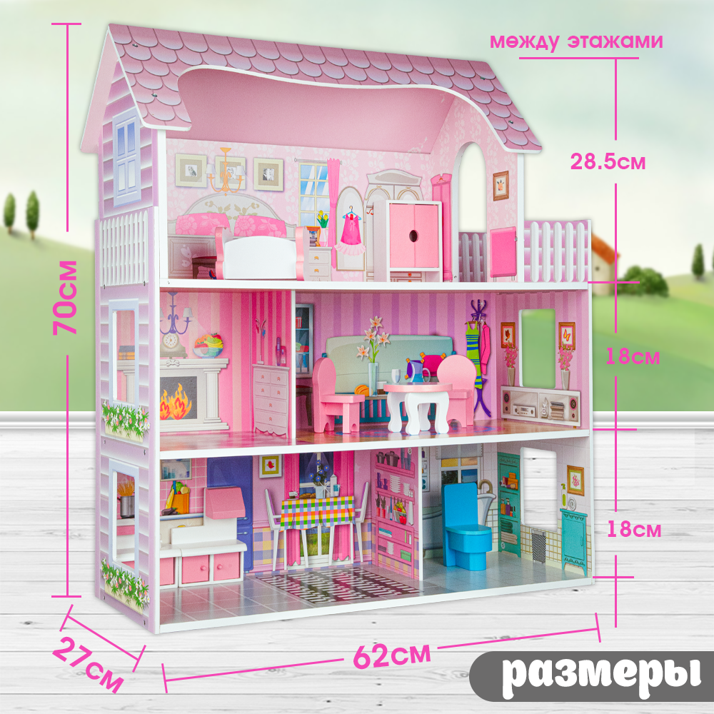 10 цен на Дом для кукол большой деревянный c мебелью, 70 см