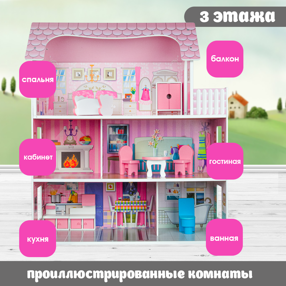 Дом для кукол большой деревянный c мебелью, 70 см информация: