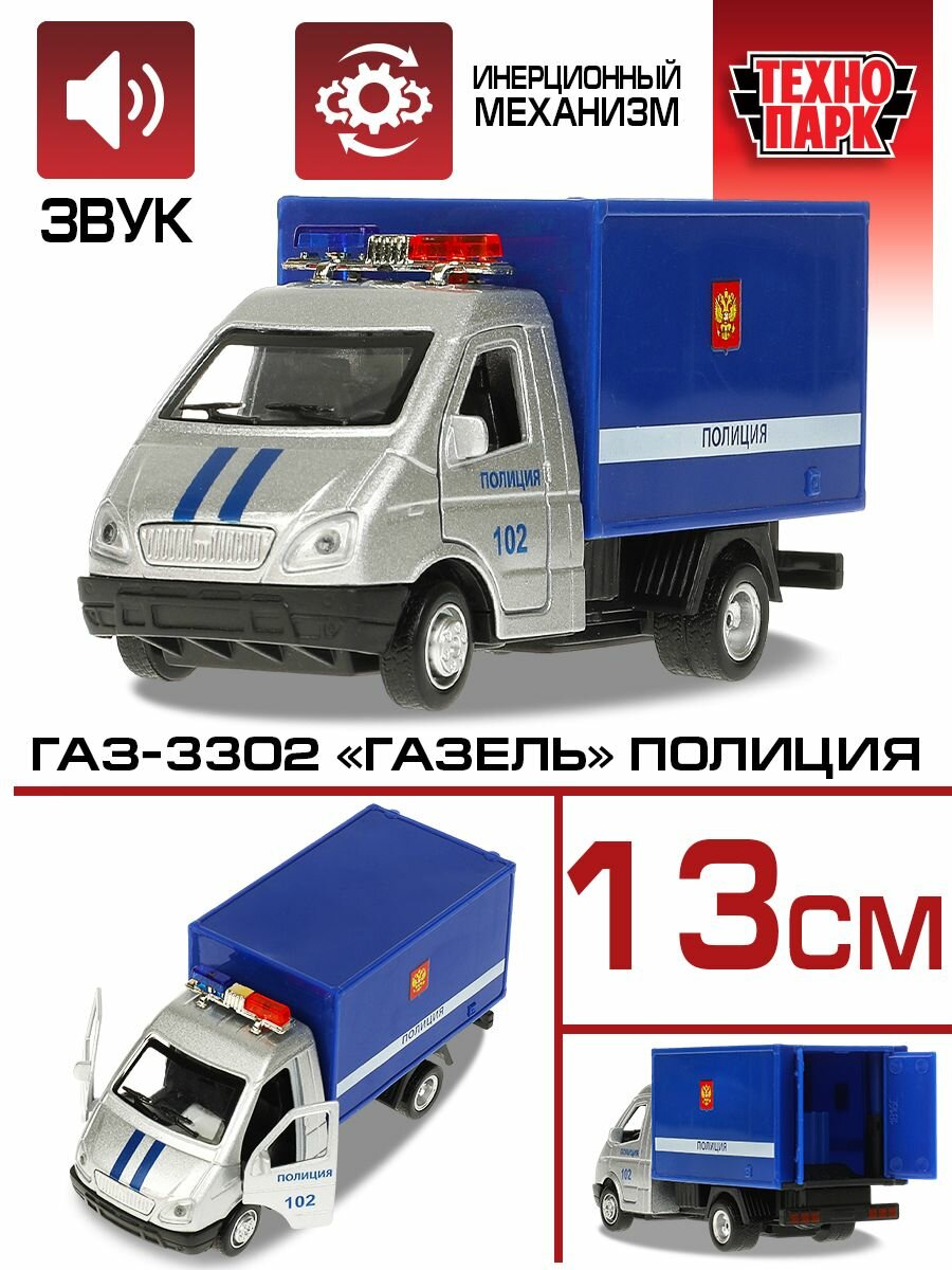Отзывы на Машина металл ГАЗ -3302 "Газель" Полиция 13 см, (двери, багаж.) свет-звук, инерц., в коробке