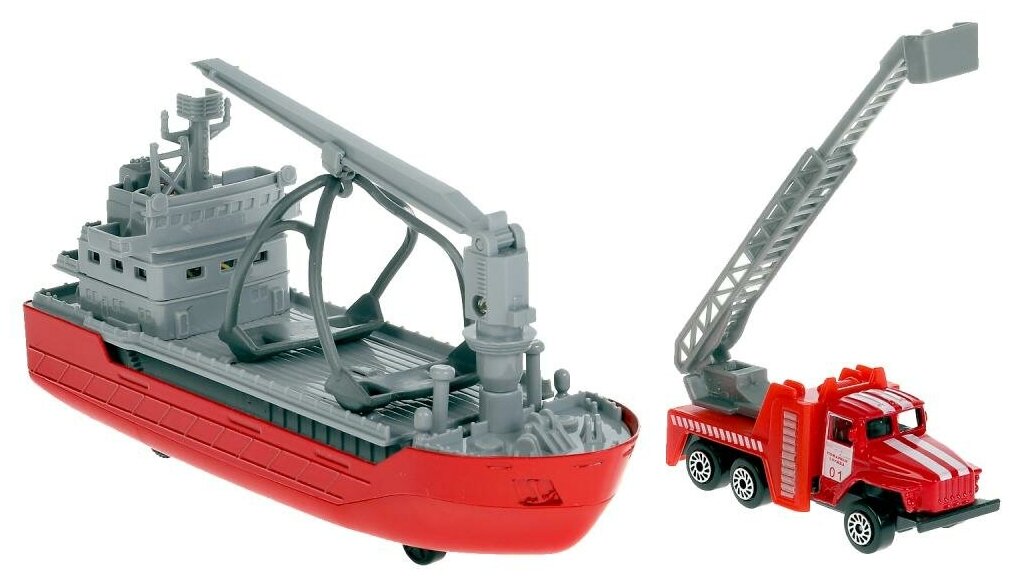 Модель Инерционная Технопарк Транспортный корабль (17см, +пожарная машина, металл, свет, звук, поднимается кран, в коробке) CRANEBOAT-17SLFIR-URLRD, (Shantou City Daxiang Plastic Toy Products Co., Ltd) информация: