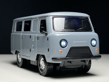 Коллекционная масштабная модель УАЗ-452 «Буханка» 1:24 (металл, свет, звук) серый информация: