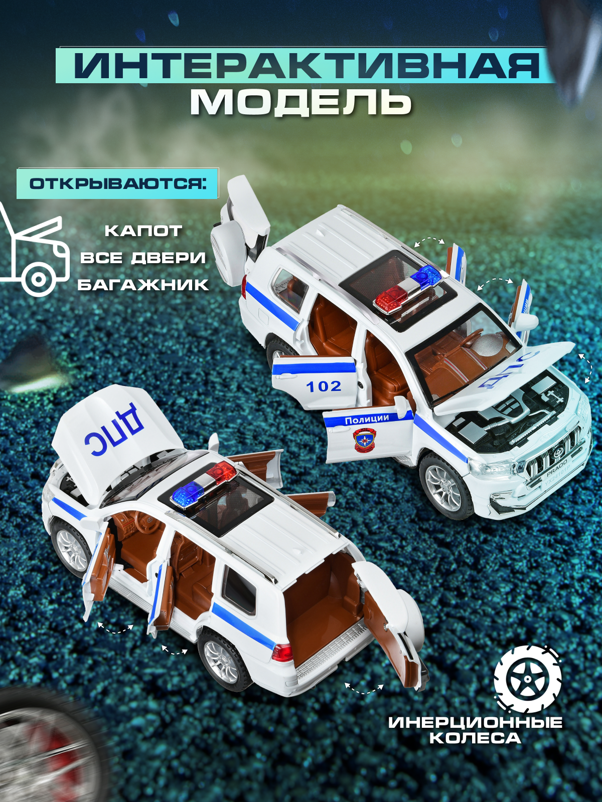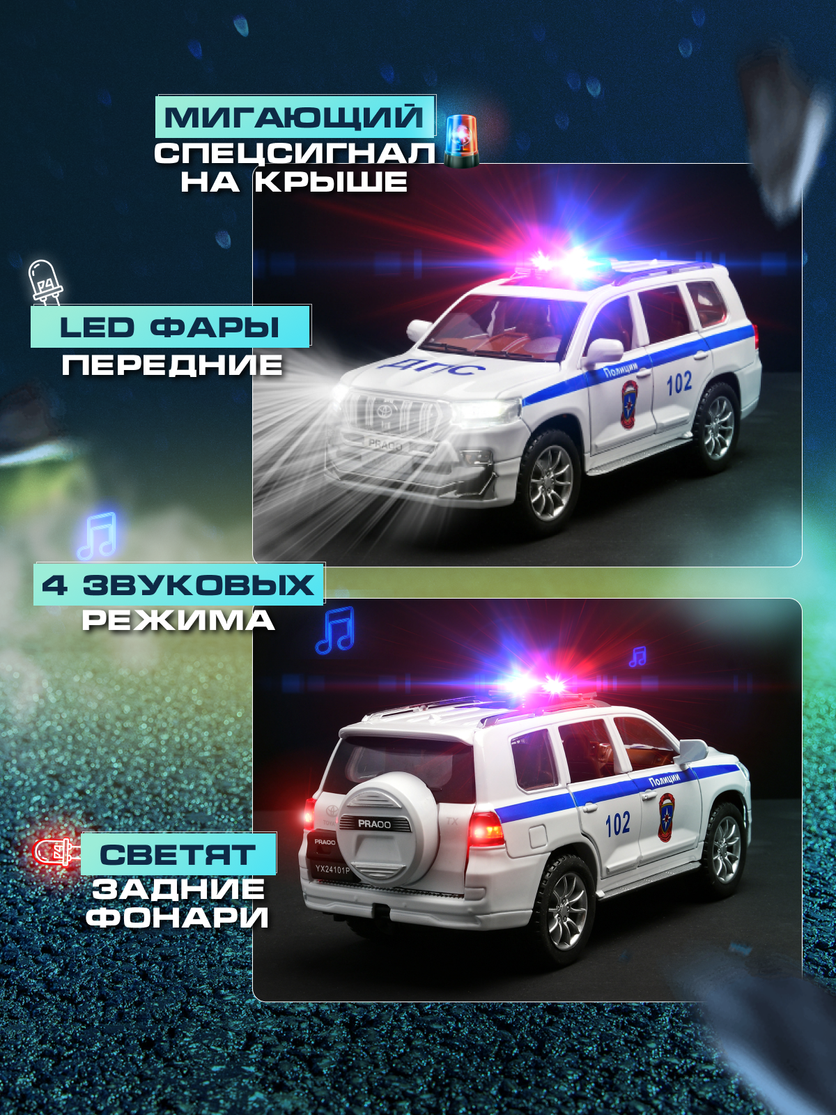 10 цен на Машинка металлическая Тойота Ленд Крузер Прадо ДПС 1:24 21см Полиция, Toyota Land Cruiser Prado, инерционная, открываются двери, капот и багажник, свет, звук