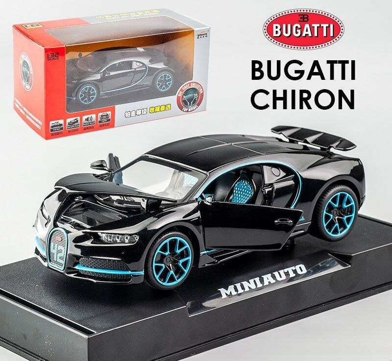 Отзывы на Коллекционная модель Bugatti Chiron В подарочной упаковке Машинка металлическая инерционная 1:32 черная, со светом и звуком
