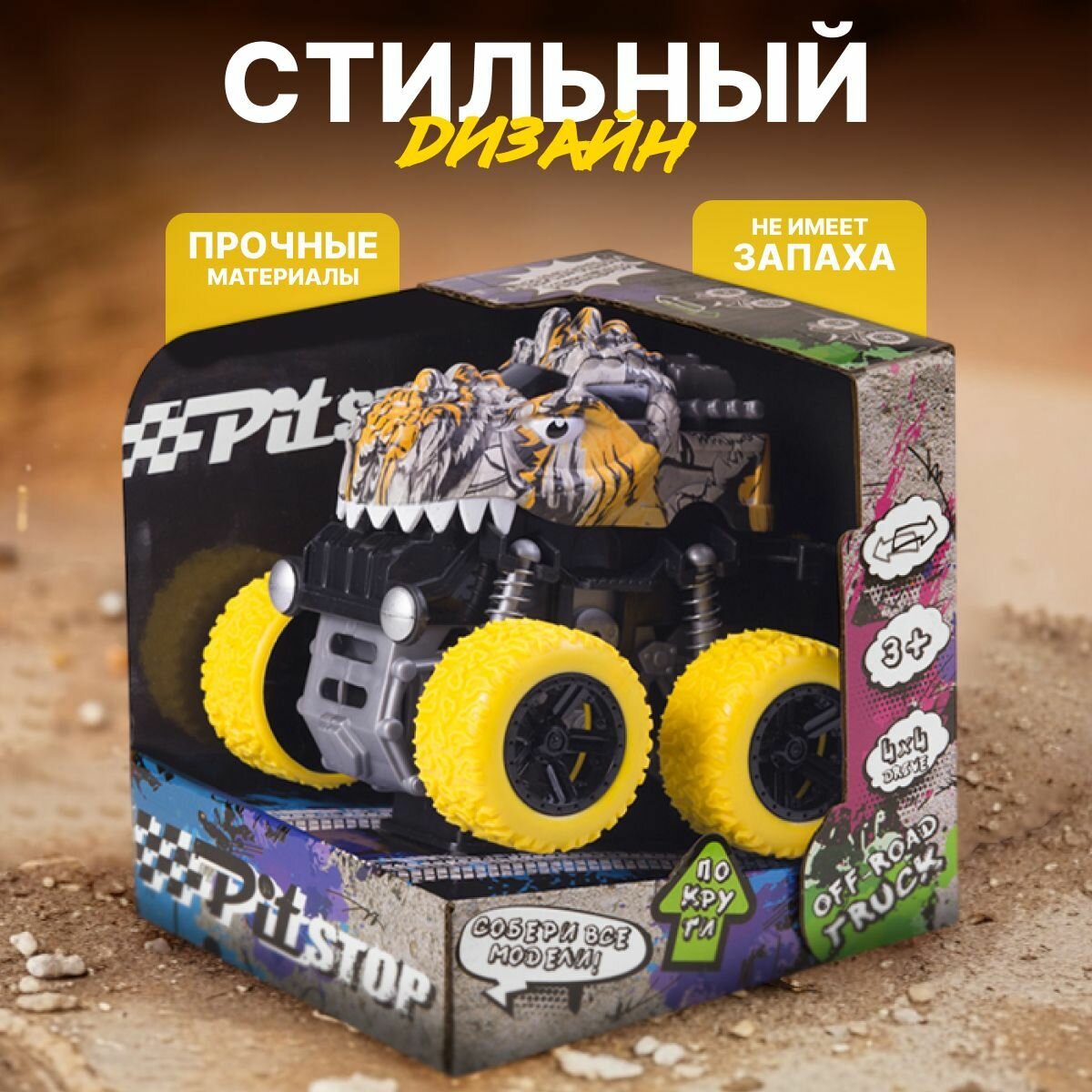 Машинка Инерционная Pit Stop, Трак Граффити Дино с Желтыми колесами, 10 см, в Коробке информация: